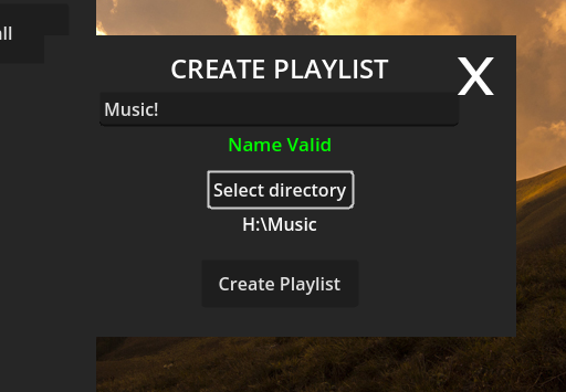 Name your playlist and find a folder where you have your music stored. if you dont have a music folder yet just create one, you will be able to download music later. dont worry about the name, if its invalid Simplaudio will tell you.