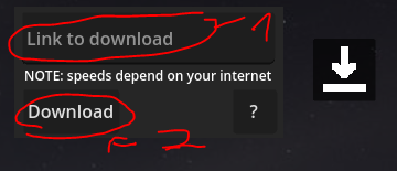 3. Paste in the link(1) and click download(2)